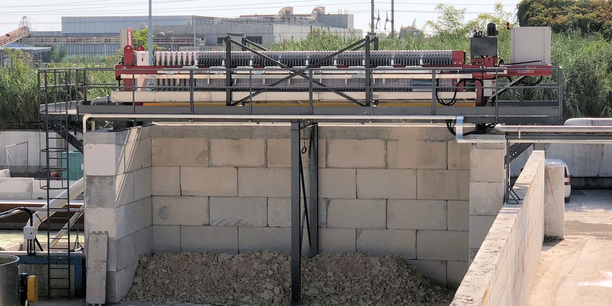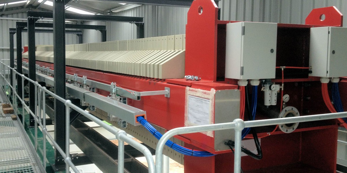 When combined with a water treatment plant a filter press can completely remove the use of settling ponds or mud lagoons. The filter press is a simple machine which separates the solids contained in a waste slurry from the water producing dry cake which is easily handled and disposed of. In addition, the water is completely recovered and recycled back to the washing process.